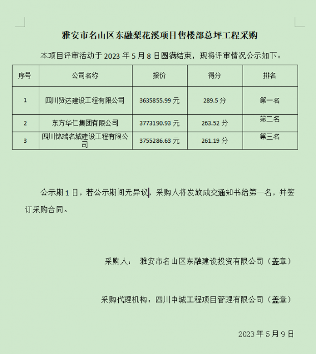 雅安市名山區(qū)東融梨花溪項(xiàng)目售樓部總坪工程采購(gòu)
